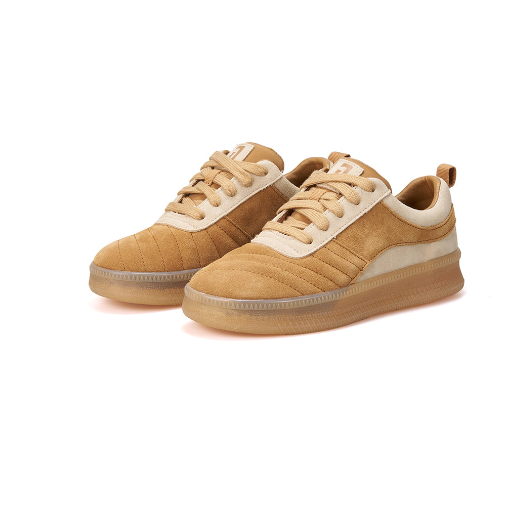 Women’s Cow Suede Camel Casual Sneakers-83616W