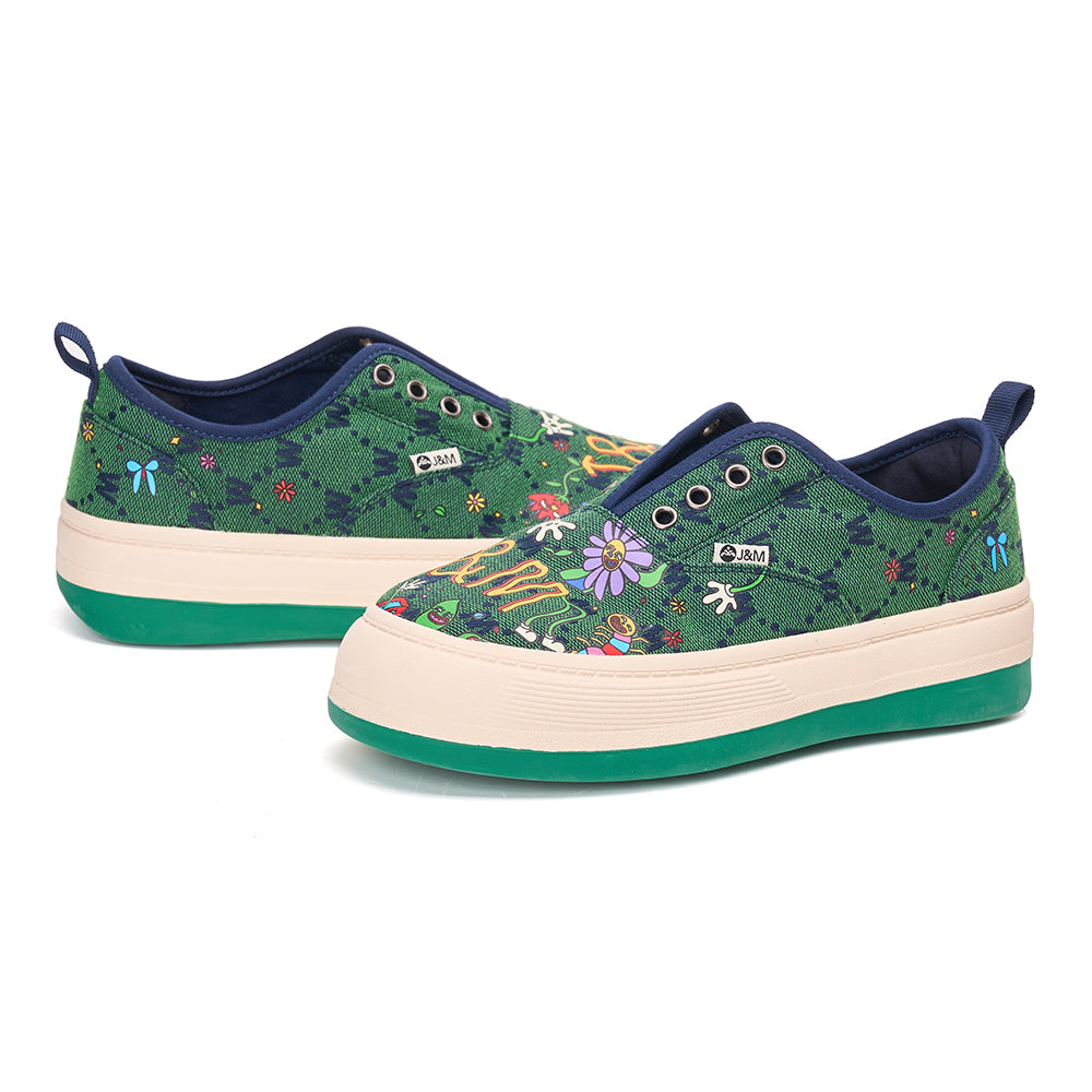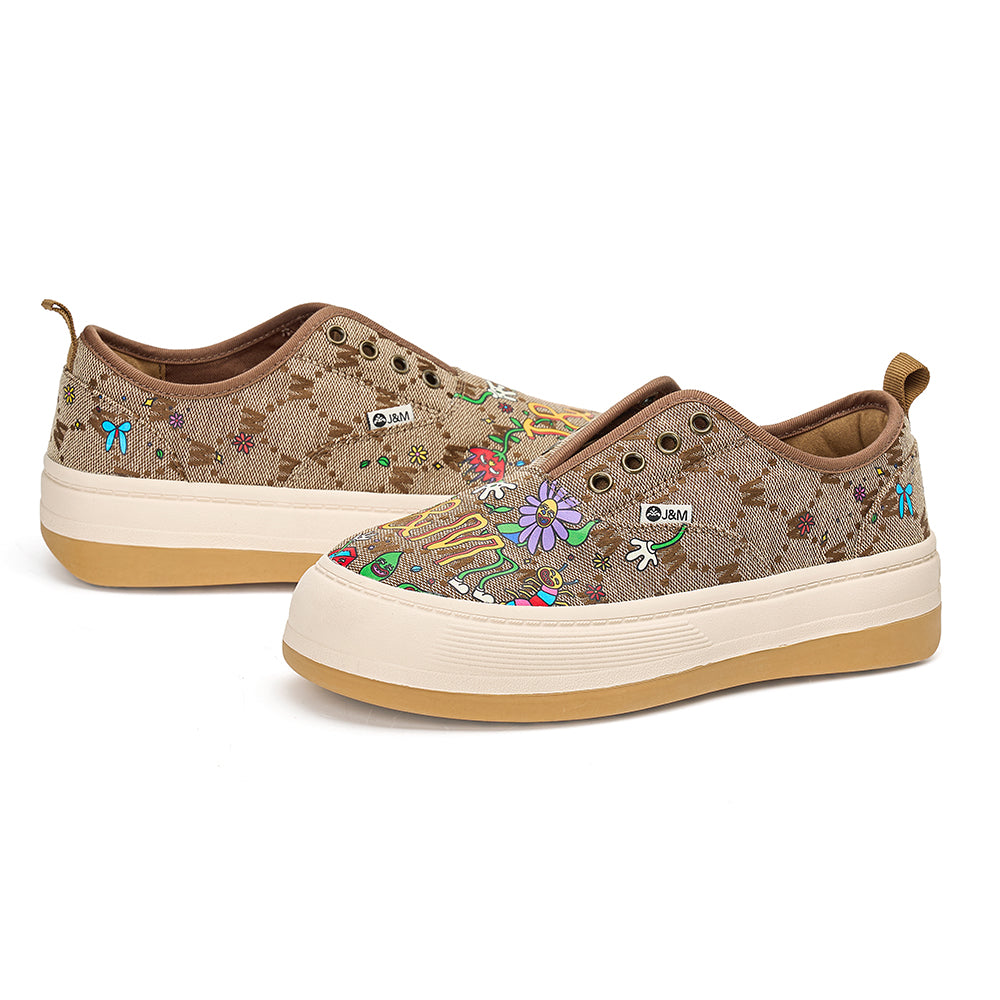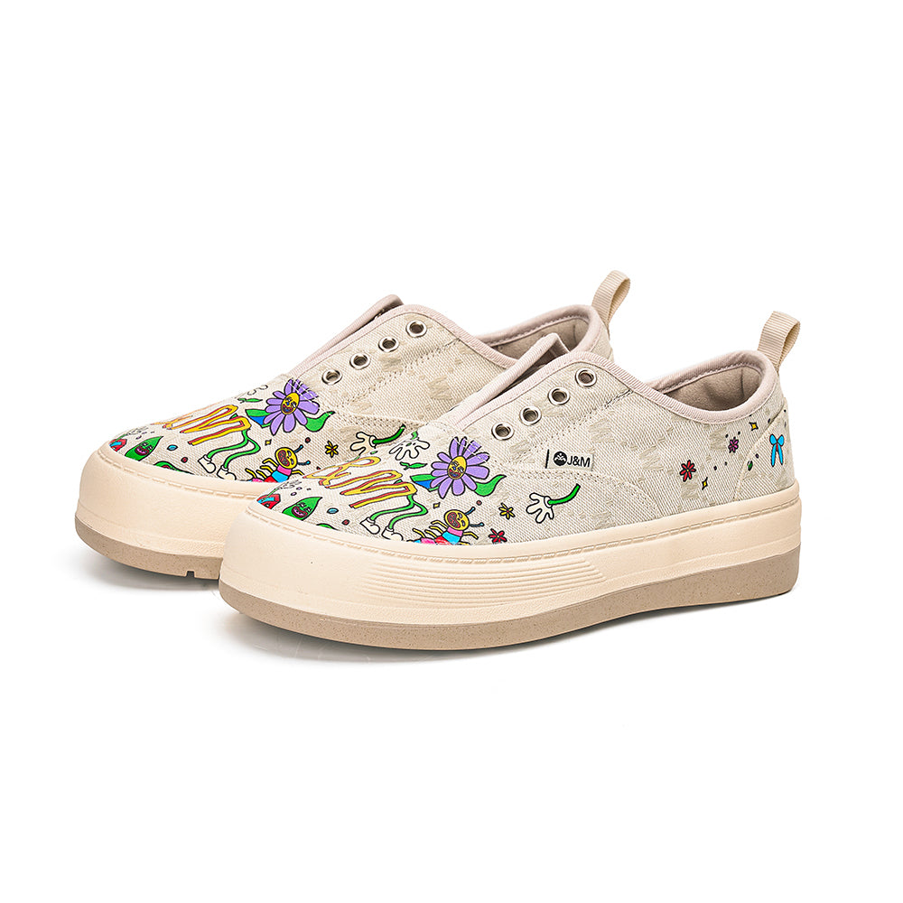JOY&MARIO Women’s Printed Fabric Slip-on Loafers in Ivory-87906W