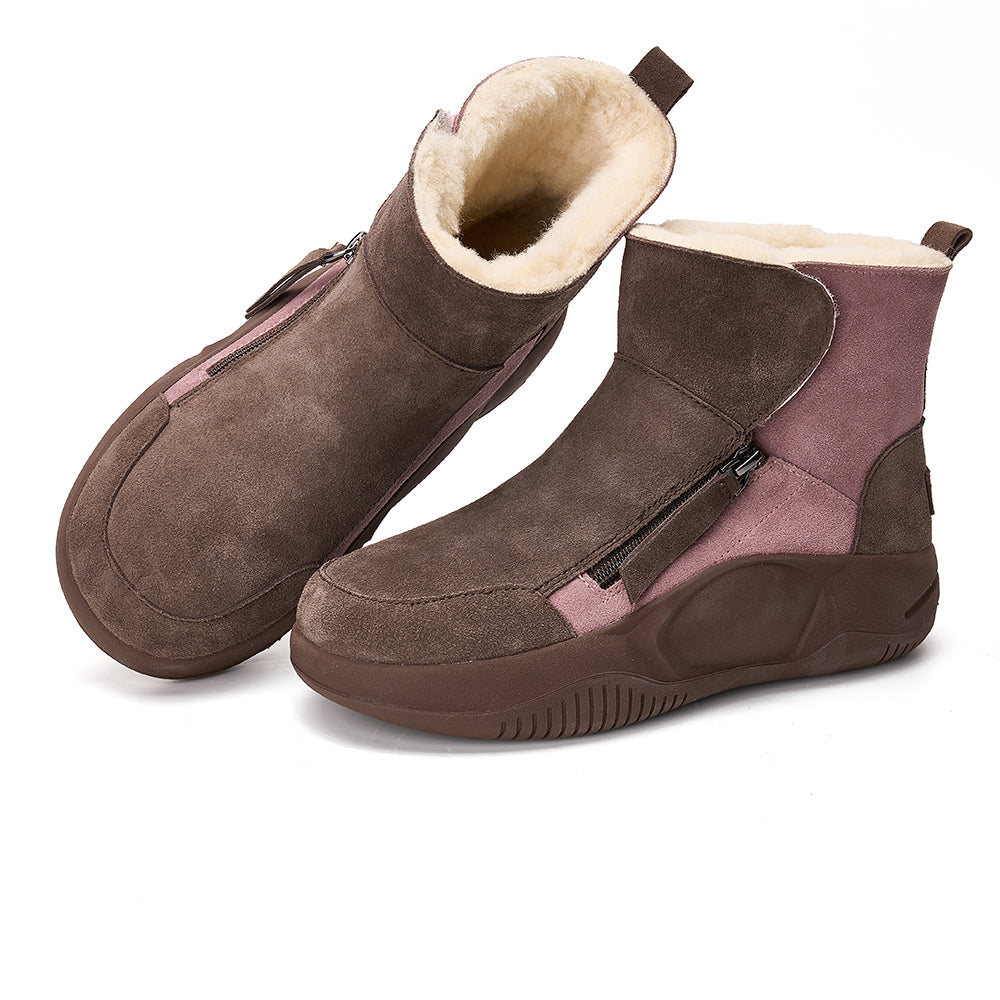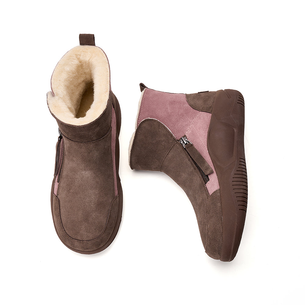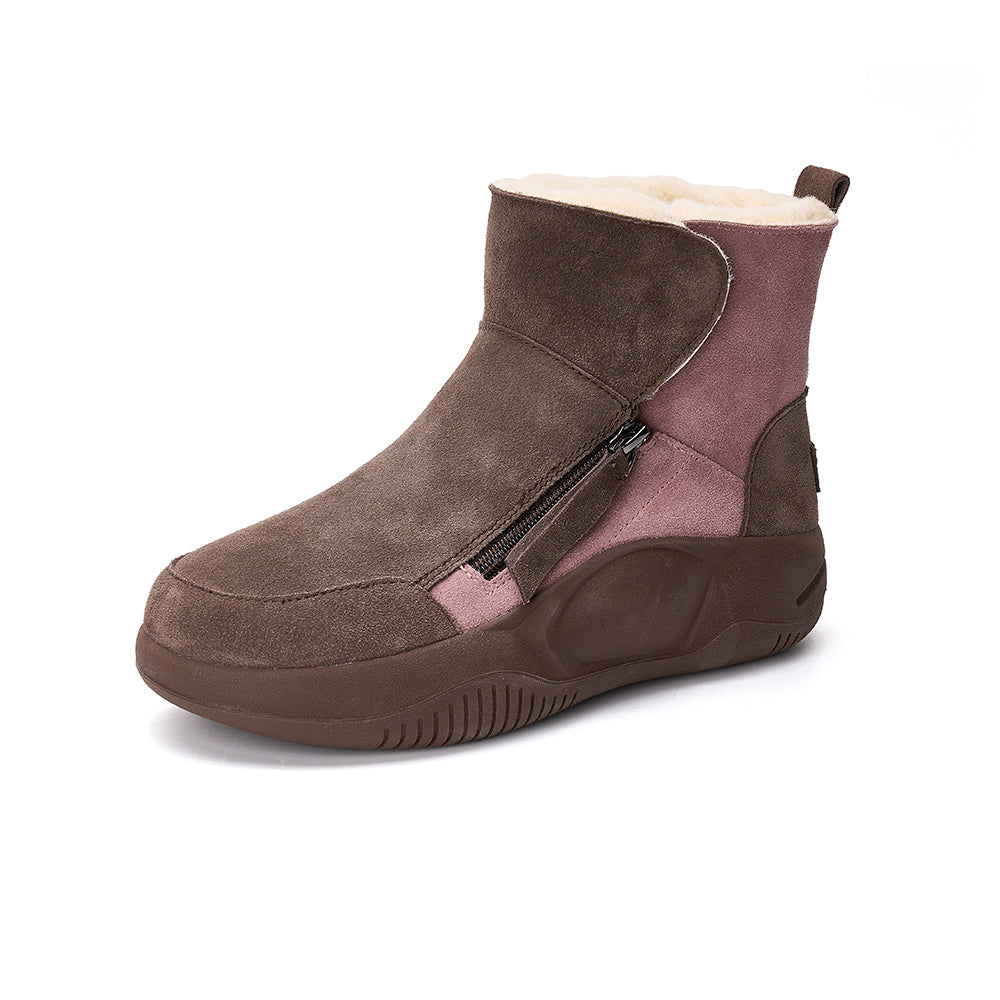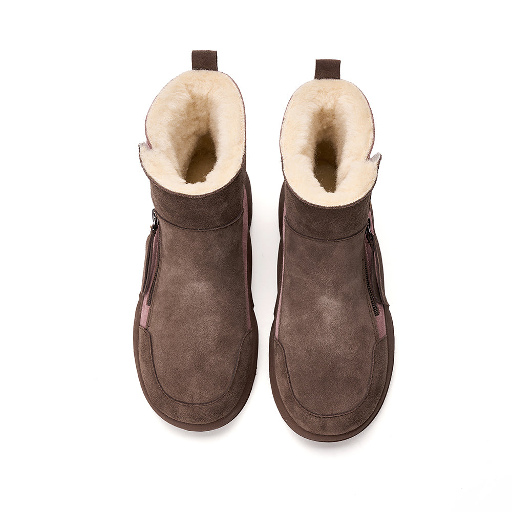 JOY&MARIO Women's Cow Suede Slip-on Snow Boots in Coffee-65753W