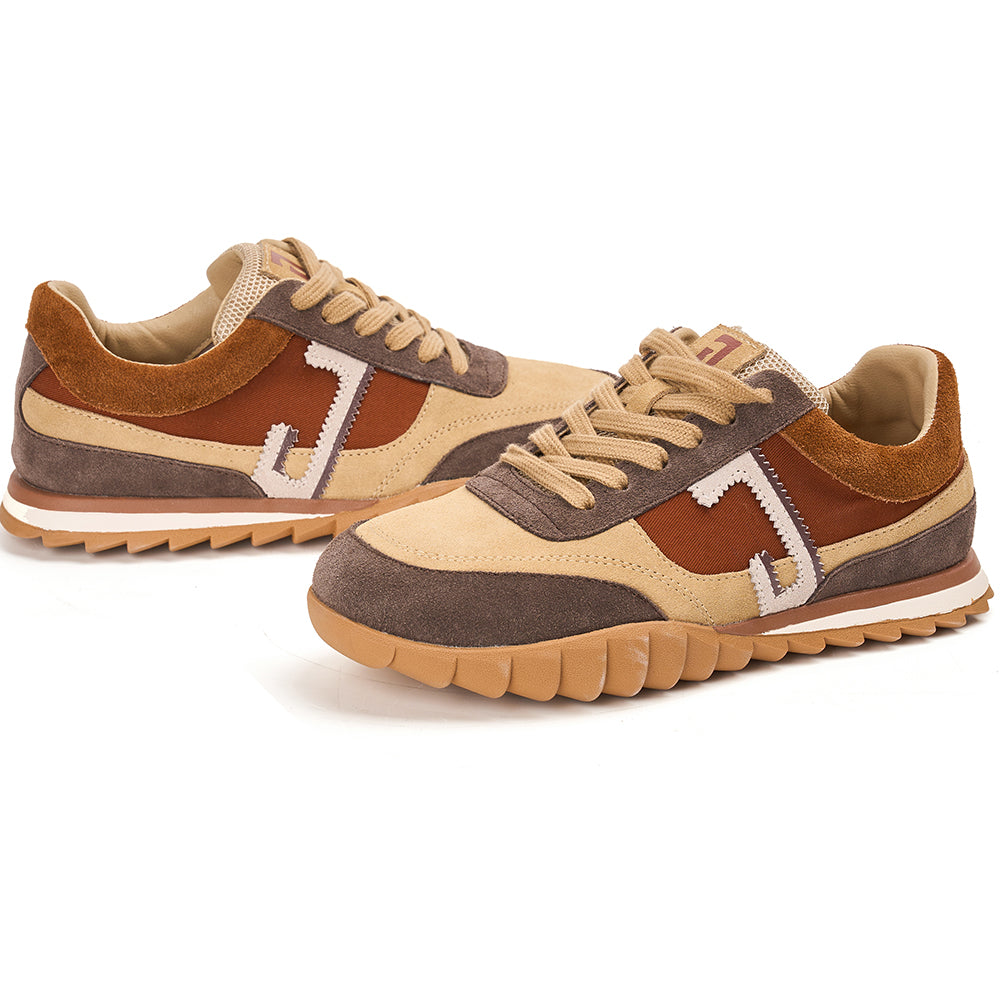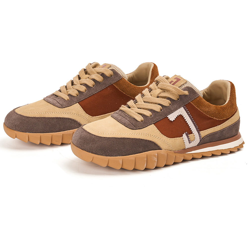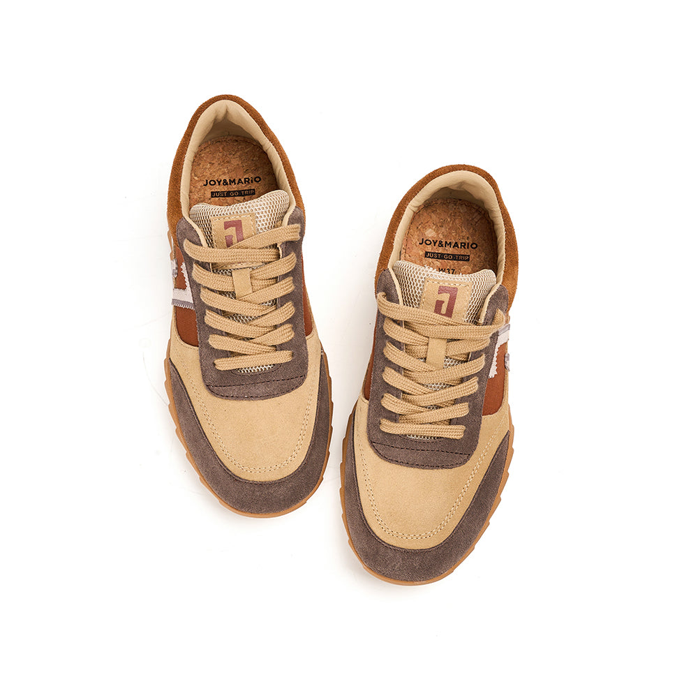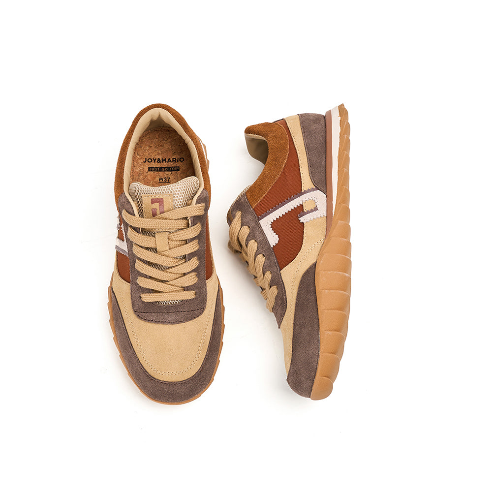 JOY&MARIO Women’s Lace-up Slip-on Cow Suede and Twill sneaker in Brown-73120W