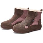 JOY&MARIO Women's Cow Suede Slip-on Snow Boots in Coffee-65753W